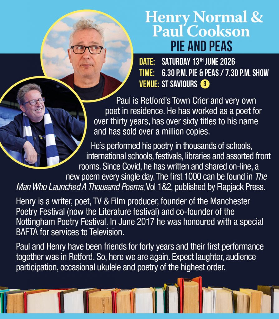 Tickets are available online at wegottickets.com or at Wonderland Bookshop, Retford.